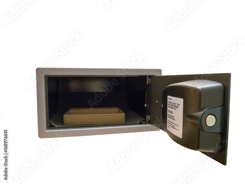 © BH007, Obraz premium black security safe is open isolated on white background