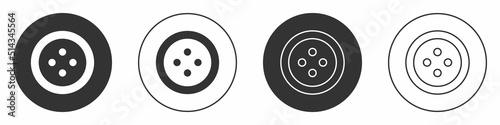 © Kostiantyn, Fototapeta premium Black Sewing button for clothes icon isolated on white background. Clothing button. Circle button. Vector
