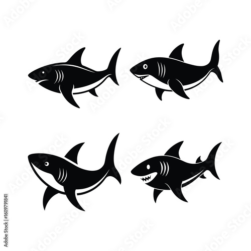 © ArunKumar, Fototapeta premium Black shark set of vector art illustration
