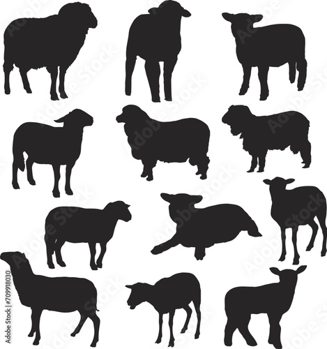 © Lovely, Fototapeta premium Black Sheep Silhouettes Vector Art.
