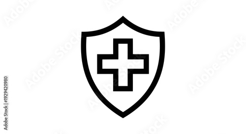 Obraz premium Black shield with a white cross symbol, representing health and protection