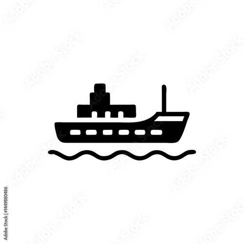 © Oxana39, Fototapeta premium Black ship icon silhouette on the sea