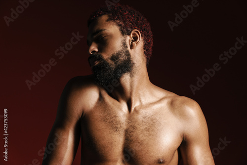 © Drobot Dean, Fototapeta premium Black shirtless bearded man posing and looking aside