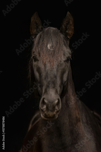 © Annabell Gsödl, Obraz premium Black shot portrait of a young black kabardinian horse
