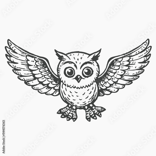 © Nahiduzzaman Shuvo, Fototapeta premium Black silhouette Brown owl with open wings, Cartoon funny owl isolated on white background