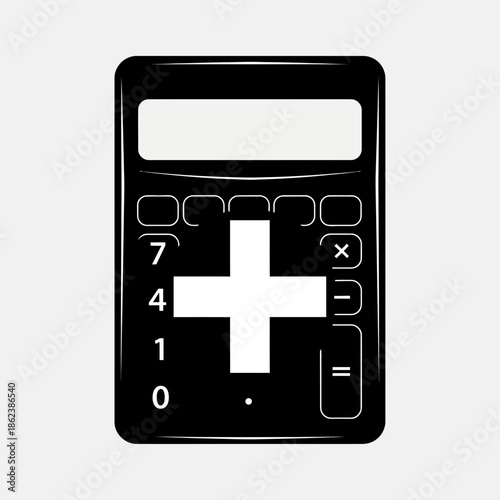 Obraz premium Black Silhouette Calculator Icon with Large Plus Sign for Addition and...