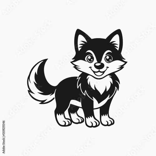 © Nahiduzzaman Shuvo, Obraz premium Black silhouette cute baby little wolf cartoon on white background
