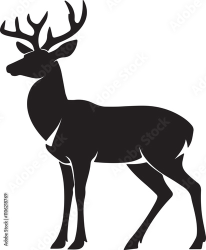 Fototapeta premium Black Silhouette Deer Illustration Isolated On White Background