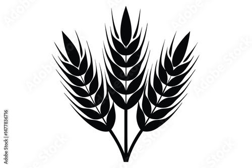 Fototapeta premium Black Silhouette Depiction Three Wheat Stalks with Grains, Symbolizing...