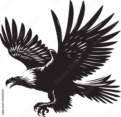 © trimboy2022, Obraz premium Black silhouette flying eagle with white background