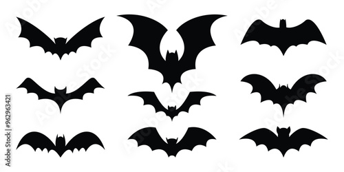 © CLton, Naklejka premium Black silhouette Halloween bat vector illustration