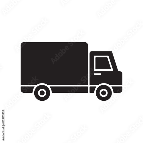 © S Creative, Fototapeta premium Black Silhouette Icon of Delivery Truck Vehicle with Wheels on White Background