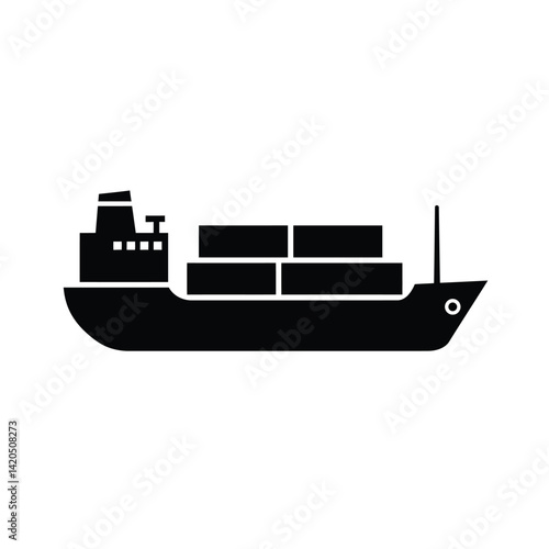 Obraz premium Black Silhouette Illustration Of A Cargo Ship Transporting Goods Overseas
