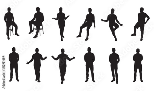 © MDKHALID, Obraz premium Black silhouette illustrations of men in various poses on a white background