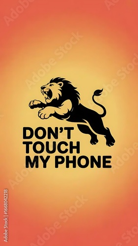 Obraz premium Black Silhouette Lion Leaping Above Dont Touch My Phone Text On Orange Gradient Background jumping