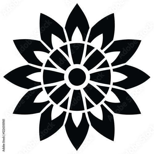 Naklejka premium Black Silhouette Mandala Design with Intricate Patterns on White Background