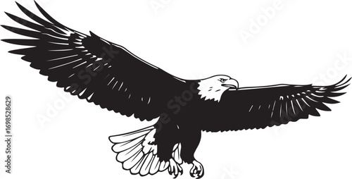 © MDALMAZED, Obraz premium Black silhouette of a bald eagle in flight bird black and white