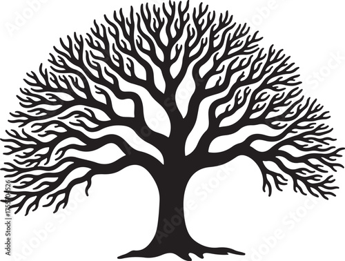 Naklejka premium Black silhouette of a bare tree with spreading branches