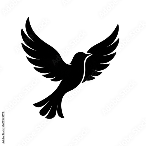 Obraz premium Black silhouette of a bird flying with outstretched wings