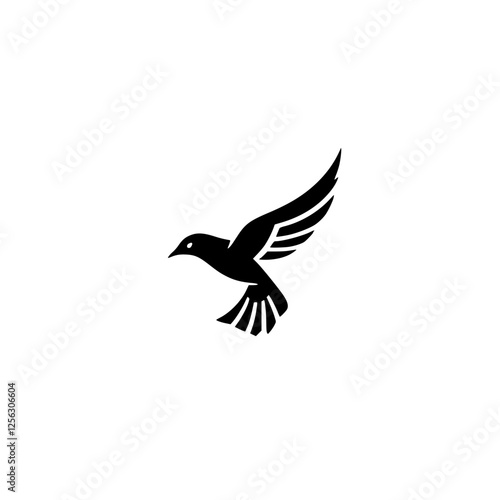 © MatandSterre, Obraz premium Black silhouette of a bird in flight against a white background.