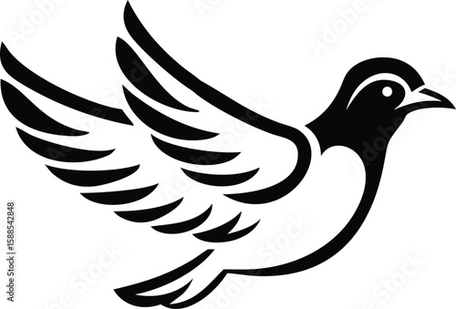 Obraz premium Black silhouette of a bird in flight flying black and white
