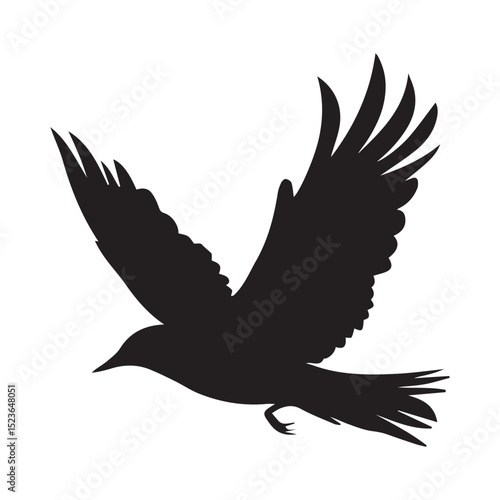 © Rinku, Obraz premium Black silhouette of a bird in flight wings spread