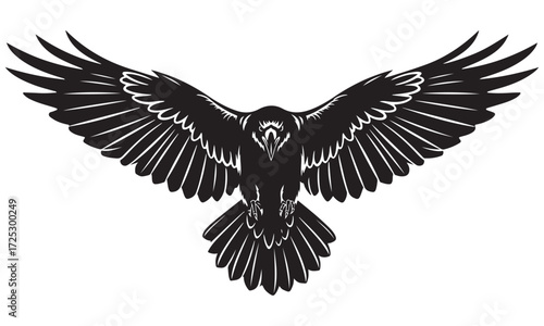 © Zulfa, Obraz premium Black Silhouette of a Bird in Flight with Spread Wings