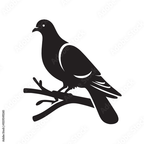 Obraz premium Black silhouette of a bird sitting on a branch.
