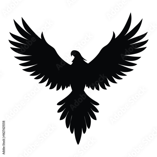 © Crea Vector Designer, Obraz premium Black silhouette of a bird with spread wings and tail feathers white