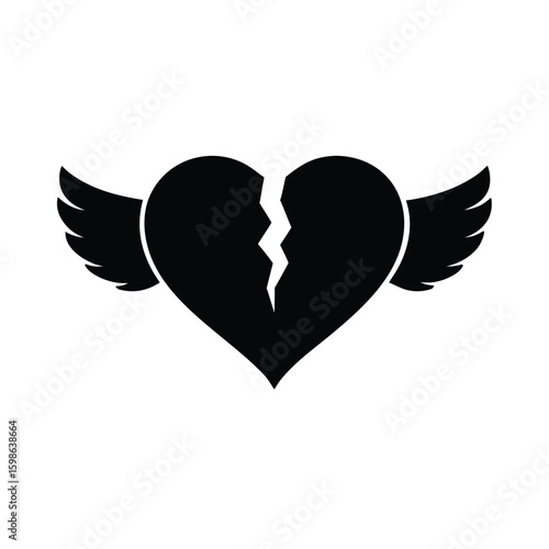 Obraz premium Black silhouette of a broken heart with an angel wing