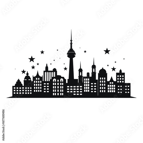 © GFX_Designer360, Fototapeta premium Black silhouette of a city skyline with stars
