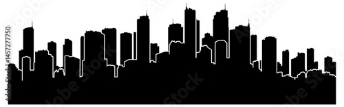 Fototapeta premium black silhouette of a city with skyscrapers or panorama without background