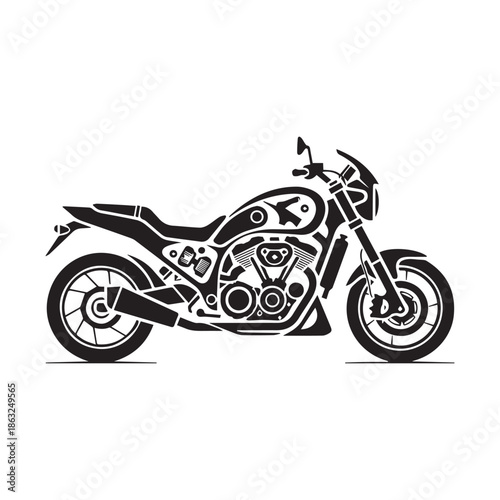 © meherub, Obraz premium Black silhouette of a classic American motorcycle vector illustration