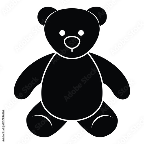 Naklejka premium Black silhouette of a classic teddy bear with white outline details stuffed animal
