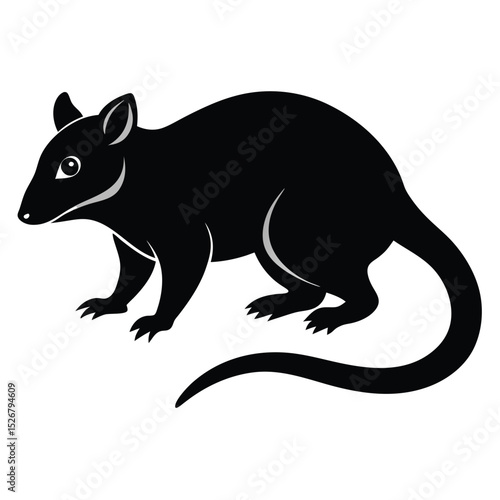 © Mizanur, Obraz premium Black silhouette of a cute opossum animal