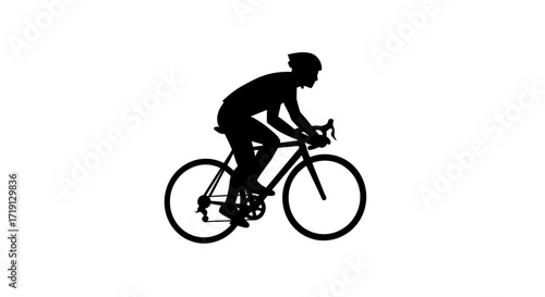 © dhorido studio, Naklejka premium Black silhouette of a cyclist riding a road bike against a white background