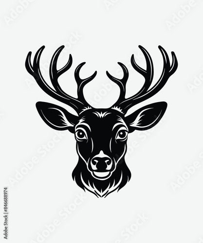 © robina, Naklejka premium Black silhouette of a Deer head vector isolated on white background
