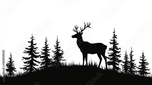 Obraz premium black silhouette of a deer on a pine hill, vector illustration for a logo...