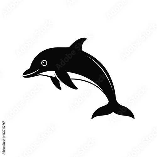© MstHumaira, Naklejka premium Black silhouette of a dolphin jumping out of water gracefully and cheerfully