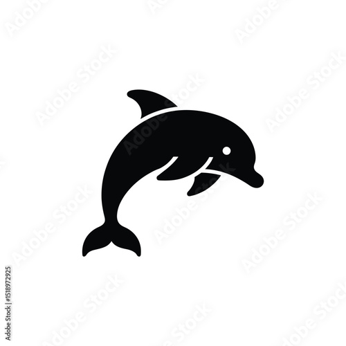 Fototapeta premium Black Silhouette of a Dolphin Leaping Upward on a White Background