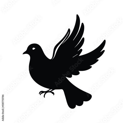 © Touseef, Fototapeta premium Black silhouette of a dove in flight against a white background. A simple, elegant design.