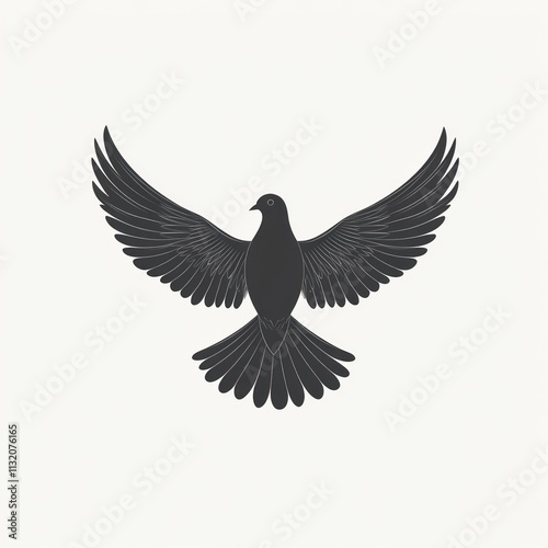 Obraz premium Black silhouette of a dove with wings spread wide. (1)