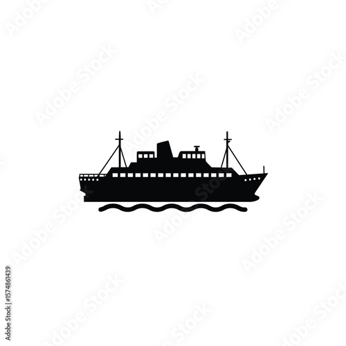 Obraz premium Black silhouette of a ferry boat on wavy water ship