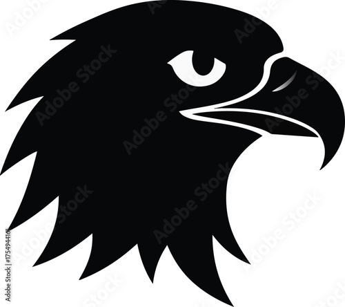 © Mahfuz, Obraz premium Black silhouette of a fierce eagle head with sharp features and a white eye on a white background
