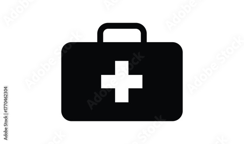 © Naim01, Obraz premium Black silhouette of a first aid kit with a white cross