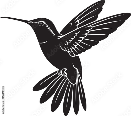 © ASHIKUR, Fototapeta premium Black silhouette of a flying hummingbird nature wildlife