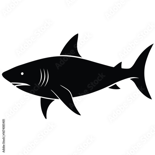 © Design store it, Obraz premium Black silhouette of a great white shark swimming white background