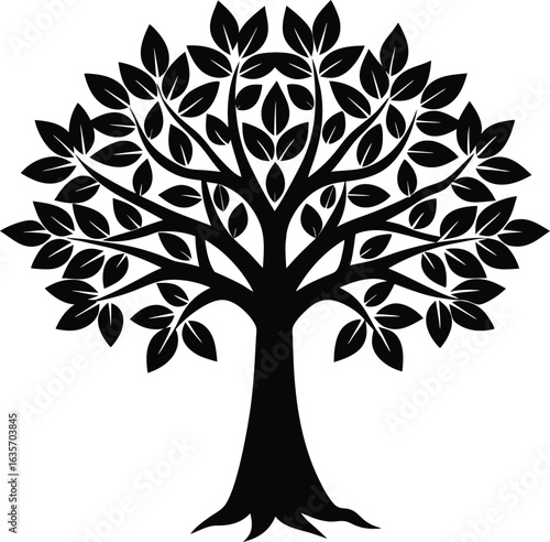 © MdSafique, Obraz premium Black silhouette of a leafy tree isolated on transparent background silhouette