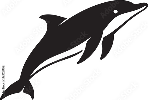 Fototapeta premium Black silhouette of a leaping dolphin simple style, Jumping sea animal clean sketch