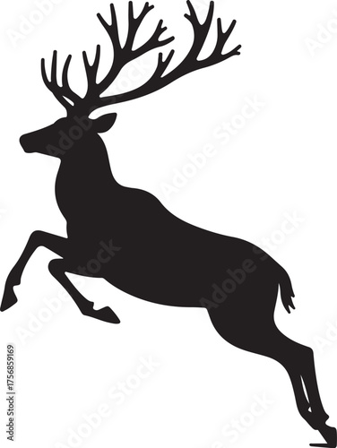 Obraz premium Black silhouette of a leaping stag with large antlers
